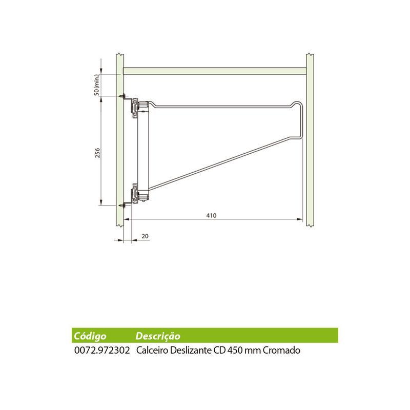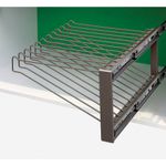 Com sua abertura integral deslizante, o calceiro oferece praticidade e otimização do espaço no armário, tornando mais simples a tarefa de escolher e guardar calças de forma organizada. O usuário pode deslizar as varetas para frente ou para trás conforme necessário, facilitando o manuseio das roupas e garantindo um armazenamento ordenado.