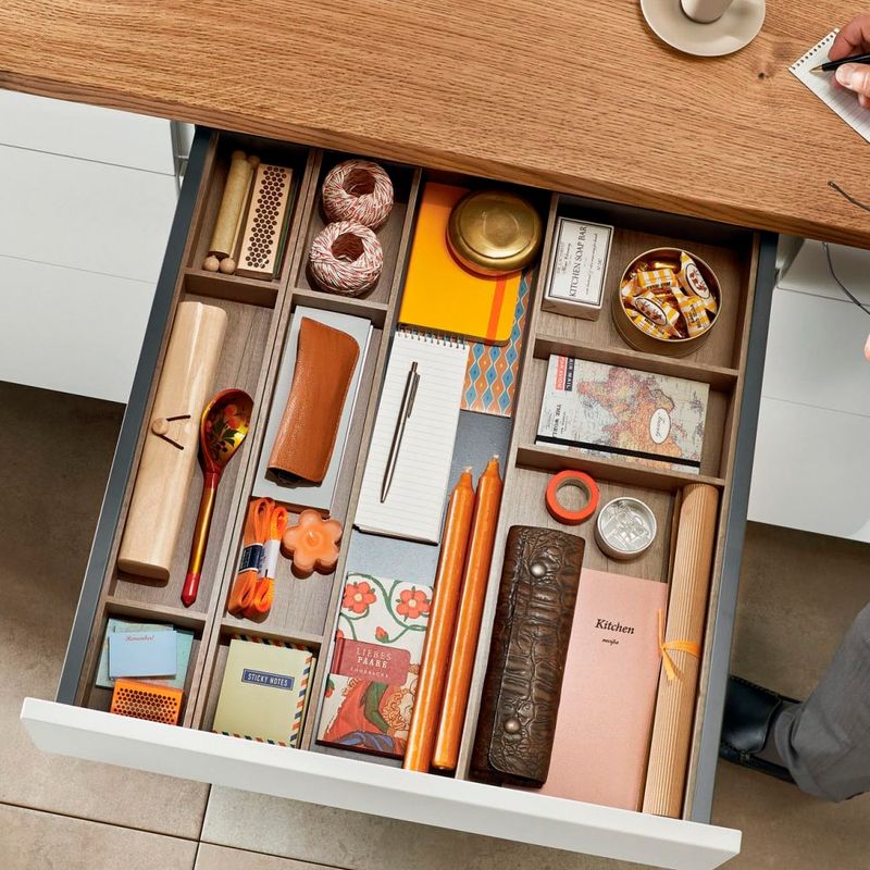 Comprometida com a integridade dos seus utensílios, a Blum concebeu este divisor pensando na segurança e proteção. A madeira de alta qualidade protege os talheres contra danos e arranhões, enquanto o design seguro e estável impede deslizamentos indesejados, garantindo que seus utensílios permaneçam protegidos, mesmo durante movimentos mais intensos da gaveta.