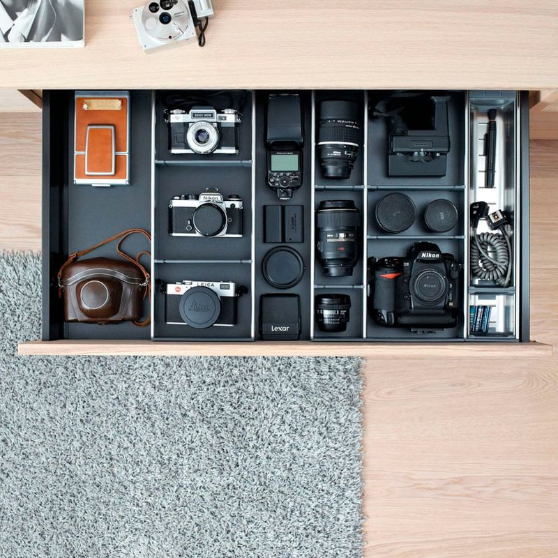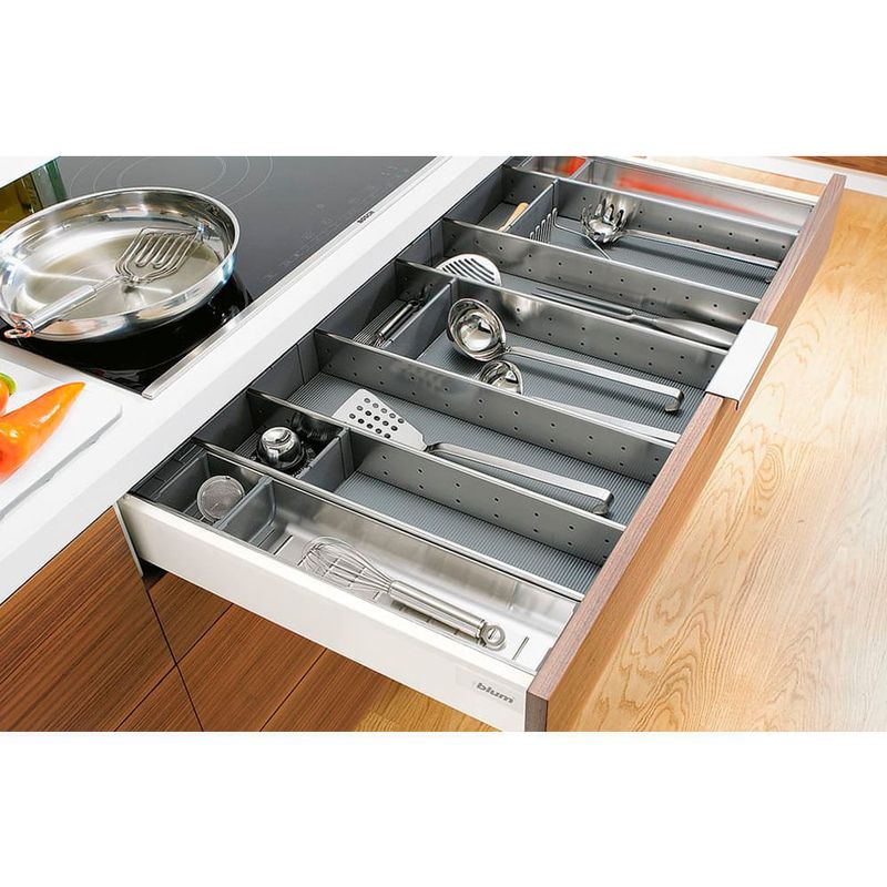 As estruturas divisórias da linha ORGA-LINE da Blum são a essência da organização inteligente para gavetas e extensões, projetadas para oferecer máxima flexibilidade e aproveitamento de espaço. Fabricadas com materiais de alta qualidade, como o aço inox, estas divisórias garantem durabilidade e um visual sofisticado ao interior dos móveis. O sistema é composto por divisores longitudinais e transversais que podem ser combinados e ajustados de inúmeras maneiras, adaptando-se perfeitamente ao tamanho e formato dos itens a serem armazenados, desde talheres e utensílios de cozinha até material de escritório e objetos pessoais. A principal característica destas estruturas é a sua capacidade de criar compartimentos personalizados, assegurando que cada objeto tenha seu lugar definido, o que facilita a visualização e o acesso rápido. São compatíveis com os sistemas de gavetas TANDEMBOX, MOVENTO e TANDEM da Blum, integrando-se de forma harmoniosa e funcional. A instalação é intuitiva e não requer ferramentas, permitindo que o usuário configure e reconfigure a organização interna conforme suas necessidades evoluem, proporcionando uma solução de organização dinâmica e eficiente para cozinhas, banheiros, escritórios e qualquer outro ambiente que demande ordem e praticidade.