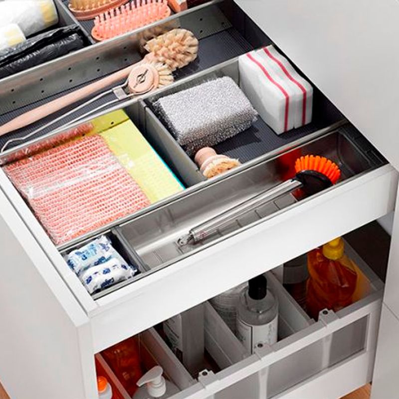 As estruturas divisórias da linha ORGA-LINE da Blum são a essência da organização inteligente para gavetas e extensões, projetadas para oferecer máxima flexibilidade e aproveitamento de espaço. Fabricadas com materiais de alta qualidade, como o aço inox, estas divisórias garantem durabilidade e um visual sofisticado ao interior dos móveis. O sistema é composto por divisores longitudinais e transversais que podem ser combinados e ajustados de inúmeras maneiras, adaptando-se perfeitamente ao tamanho e formato dos itens a serem armazenados, desde talheres e utensílios de cozinha até material de escritório e objetos pessoais. A principal característica destas estruturas é a sua capacidade de criar compartimentos personalizados, assegurando que cada objeto tenha seu lugar definido, o que facilita a visualização e o acesso rápido. São compatíveis com os sistemas de gavetas TANDEMBOX, MOVENTO e TANDEM da Blum, integrando-se de forma harmoniosa e funcional. A instalação é intuitiva e não requer ferramentas, permitindo que o usuário configure e reconfigure a organização interna conforme suas necessidades evoluem, proporcionando uma solução de organização dinâmica e eficiente para cozinhas, banheiros, escritórios e qualquer outro ambiente que demande ordem e praticidade.