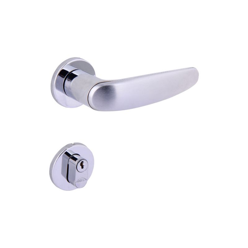 Fechadura externa da linha Polo Z, com acabamento cromo escovado, modelo 108429/40 da Arouca. O acabamento fosco e o design arrojado da linha Polo Z criam uma estética contemporânea e sofisticada para portas de entrada.
