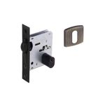 Fechadura externa com mecanismo de trinco rolete e lingueta, modelo 4110/45/081 da Arouca. Fabricada em aço inoxidável com acabamento antique, proporciona um visual clássico e envelhecido. Ideal para portas pivotantes ou de passagem que exigem um fechamen