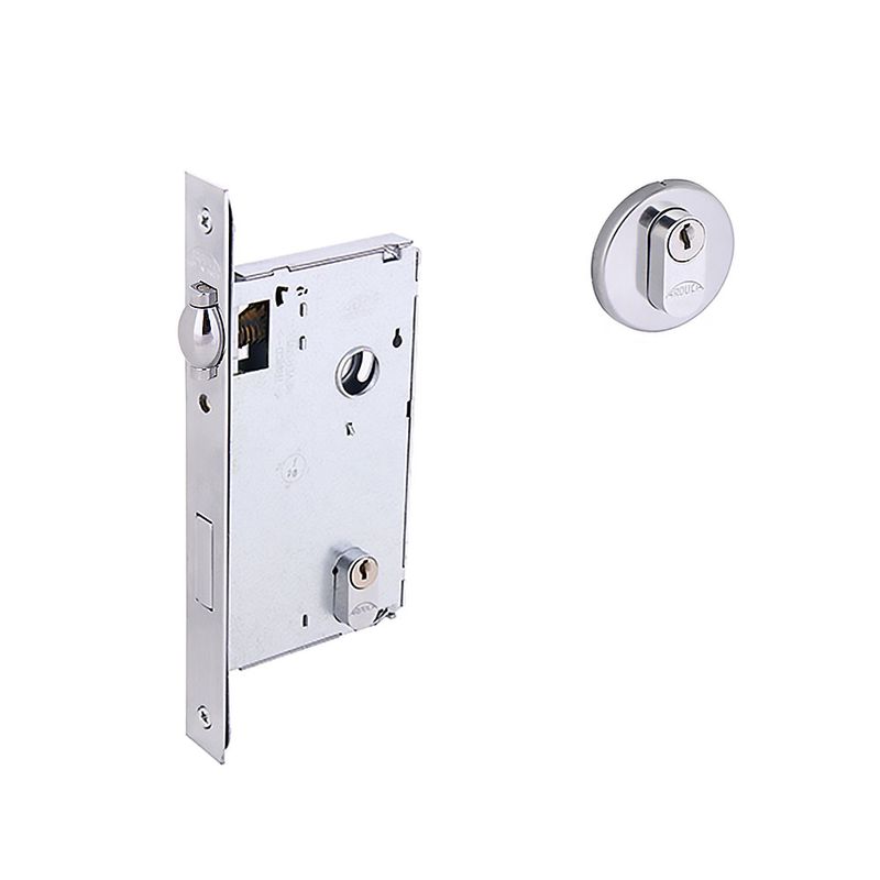 Fechadura externa com mecanismo rolete, modelo 4010/55/084 da Arouca. Com acabamento em inox polido, oferece um visual sofisticado e brilhante com excelente resistência à corrosão. É a escolha perfeita para portas de entrada pivotantes, garantindo seguran