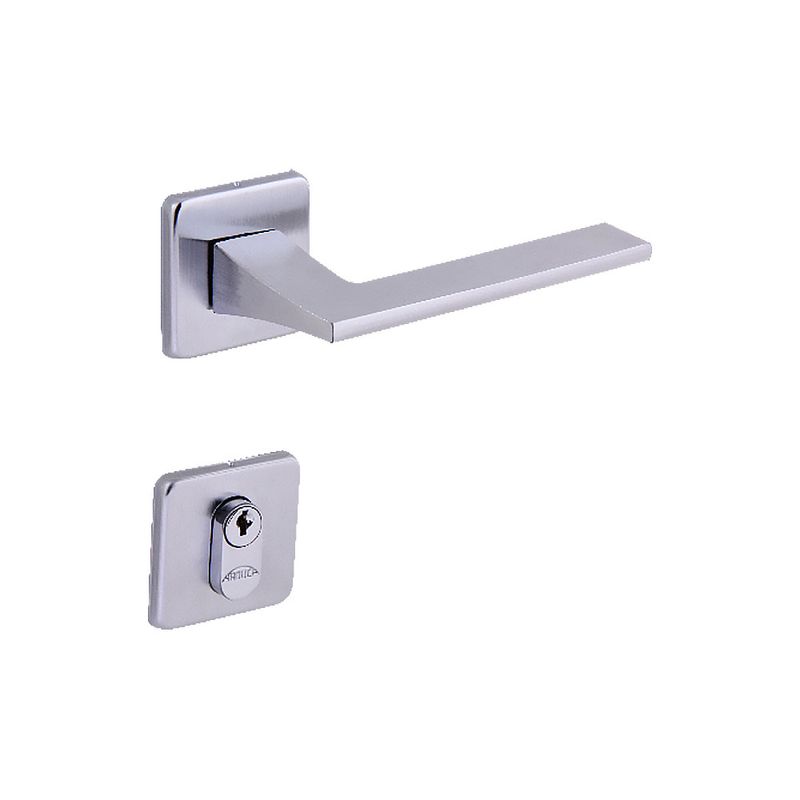 Fechadura externa da linha Stilo, com acabamento cromo escovado, modelo 108027/40 da Arouca. O acabamento fosco realça o design único da linha Stilo, proporcionando um visual contemporâneo e sofisticado para portas de entrada.