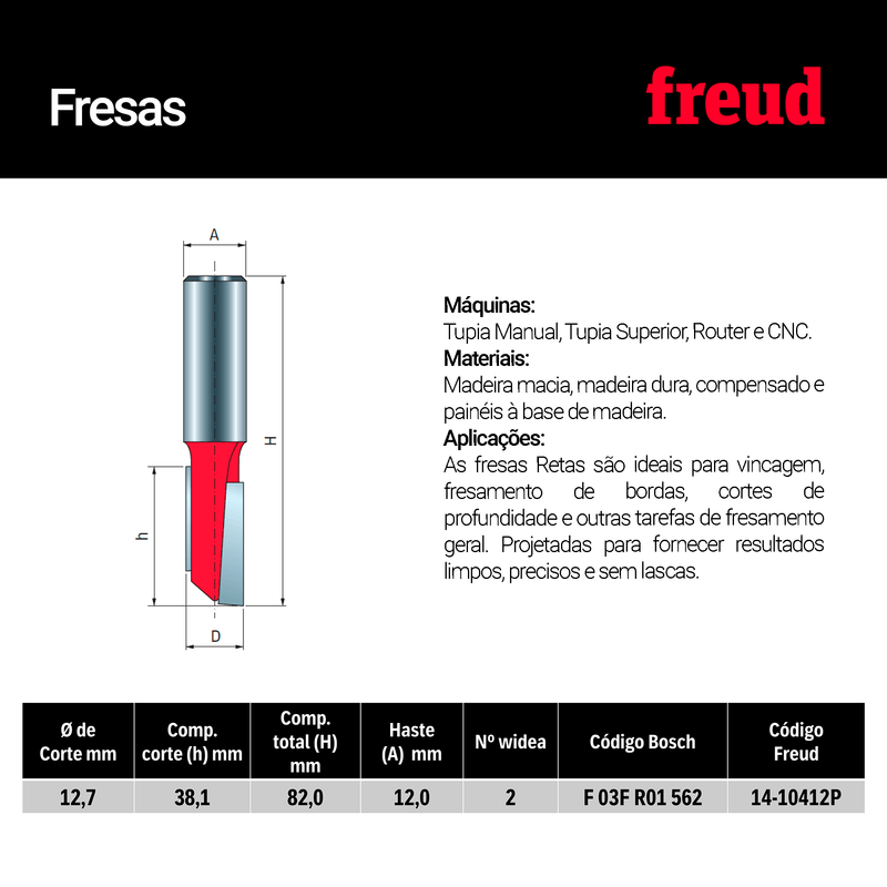 FerramentasFresasFresa Reta 14-10412P Ø 12,7mm, Altura de Corte 38,1mm Freud