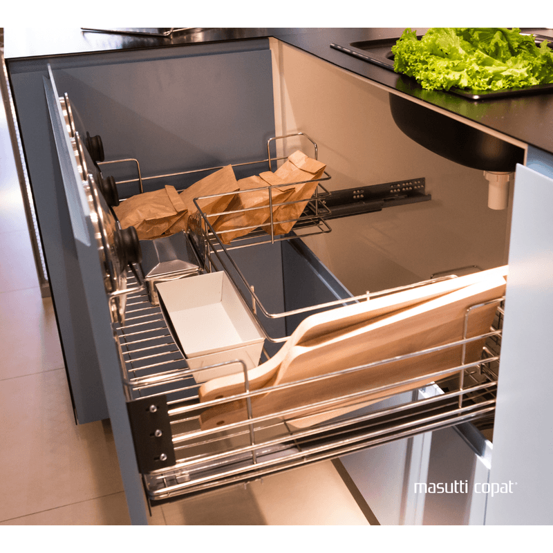 A Gaveta Pia com Sifão Inox com Corrediça Telescópica Masutti Copat possui acabamento cromado, que diminui a corrosão e os efeitos do tempo na peça. Possui formato quadrado com extremidades curvas. Acompanha 01 par de corrediças telescópicas galvanizadas de 450 mm que podem ser alteradas. Modernidade, praticidade e funcionalidade na hora de montar a cozinha perfeita.