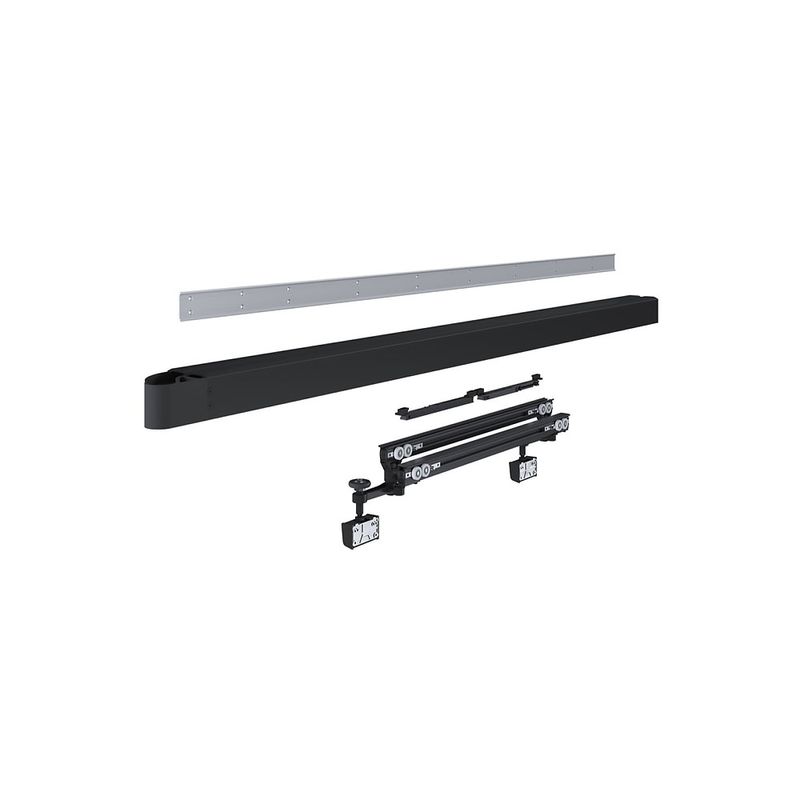 Kit completo para portas de correr do sistema Coplanar C-1000 com acionamento manual. Este conjunto foi projetado para ser instalado com fixação na lateral esquerda do móvel e é compatível com portas de 700 a 1200mm de largura, proporcionando um deslizamento suave e um fechamento perfeitamente alinhado.