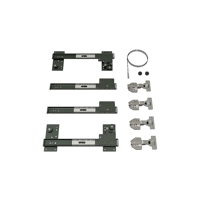 Kit para sistema de porta escamoteável Rivelato Ampio, com 337 mm de profundidade. É projetado para portas embutidas com espessura entre 15 e 20 mm, permitindo que a porta deslize para dentro do móvel e se oculte completamente.