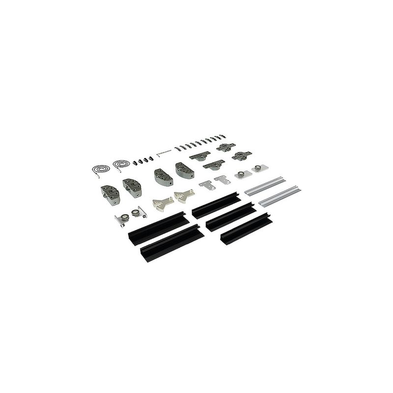 Kit de componentes para montagem de uma porta no sistema Verticato, utilizando o perfil Supra. Este conjunto é fornecido com acabamento na cor Preto e inclui perfis com 3 metros de comprimento, sendo ideal para a estruturação de portas de armários e divisórias.