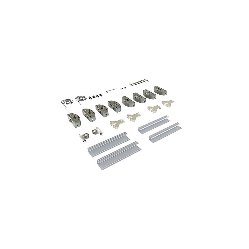 Kit de ferragens para montagem de duas portas no sistema Verticato, com mecanismo de abertura sincronizada (Syncro) e perfil Supra. Este conjunto possui acabamento na cor Natural (alumínio) e inclui perfis de 2 metros de comprimento, permitindo que ambas as portas se movam simultaneamente.
