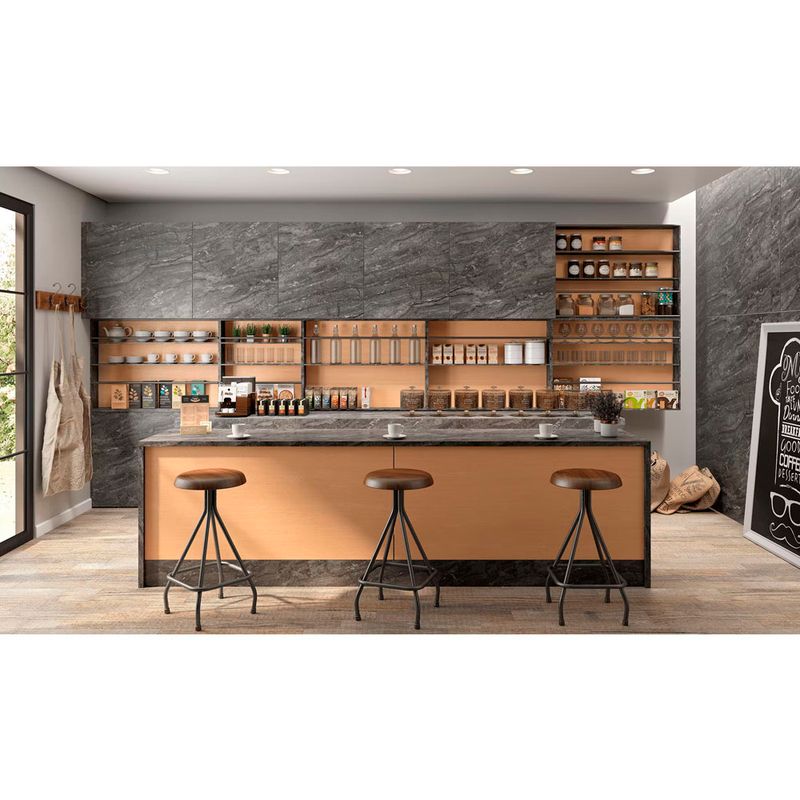 O cosmos é representado pela união de veios preenchidos com ouro e fundo grafite que garantem um padrão exótico e de personalidade. A textura lisa traz um charme especial ao produto.