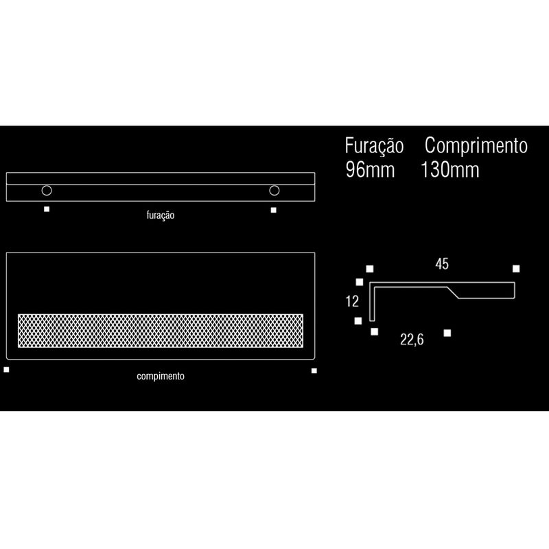 Furação: 96 mm - Comprimento: 130 mm