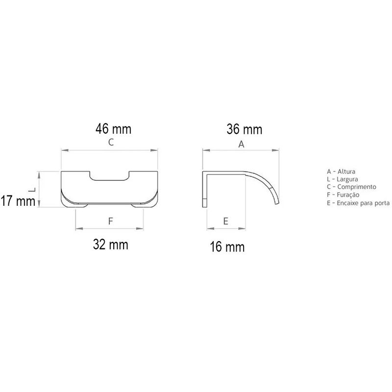 32mm: 36 x 17 x 46mm (A x L x C) Espessura: 16mm