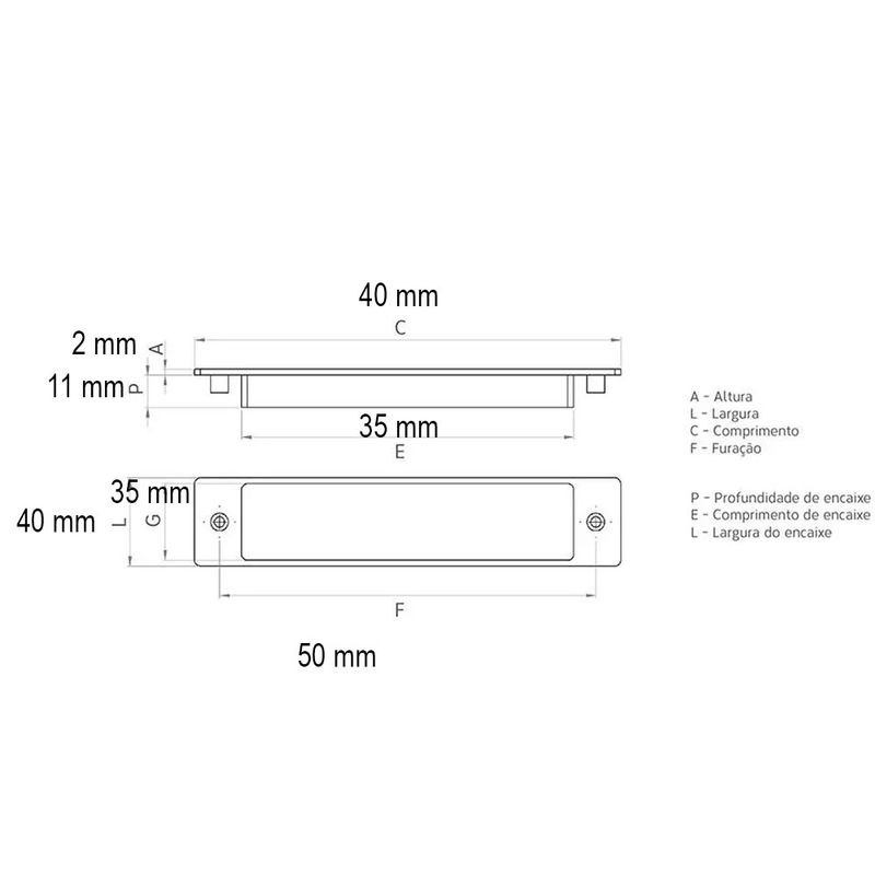 11mm: 2 x 40 x 40mm (A x L x C) Espessura: 35mm