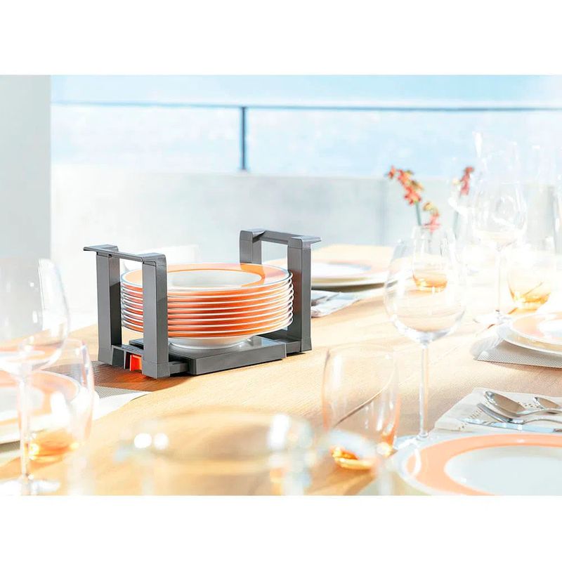 O Suporte para Pratos Ambia-Line ZC7T0350 da Blum é a solução perfeita para acondicionar e transportar seus pratos com segurança e elegância. Projetado para extensões frontais TANDEMBOX intivo, este suporte robusto, feito em inox e plástico de alta qualidade na cor Cinza Orion Escovado, tem capacidade para até 12 pratos com diâmetro entre 180-320 mm. Seu sistema de ajuste contínuo garante que os pratos fiquem firmes e organizados, sem risco de escorregar, podendo ser facilmente levados ao ambiente desejado. Com dimensões que permitem um empilhamento máximo de 144 mm e altura total de 171 mm, ele otimiza o espaço em suas gavetas, combinando funcionalidade com um design sofisticado.